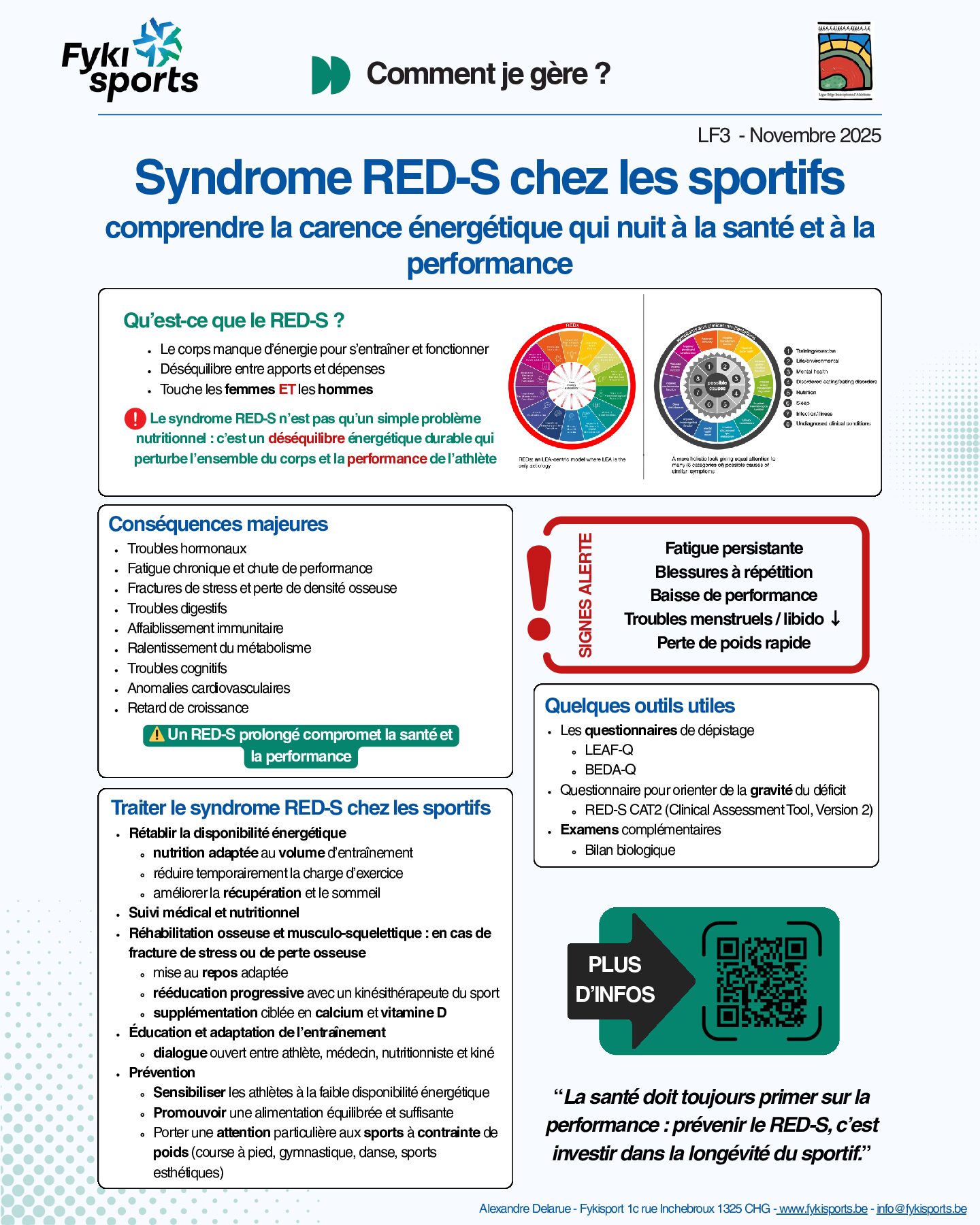 • une infographie téléchargeable (ici et sur le site de la LBFA) afin de la diffuser auprès de vos athlètes.